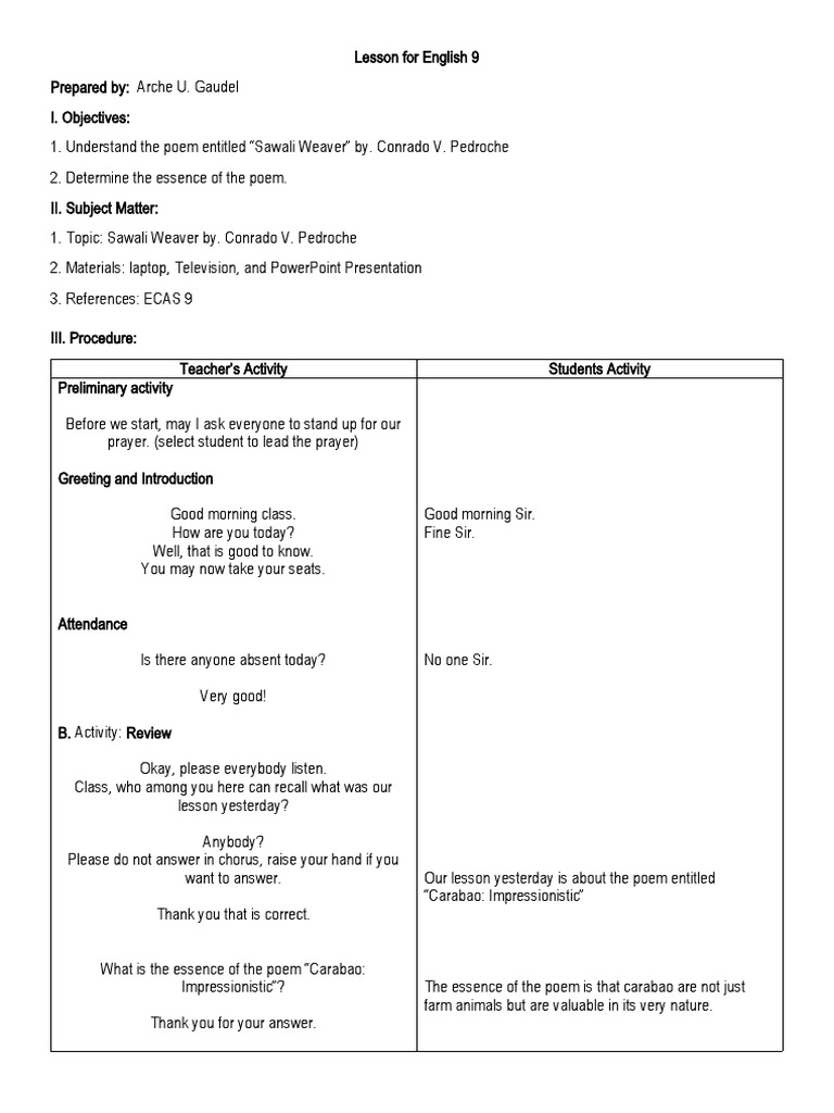 Lesson For English 9 Sawali Weaver Pdf Communication Behavior Modification